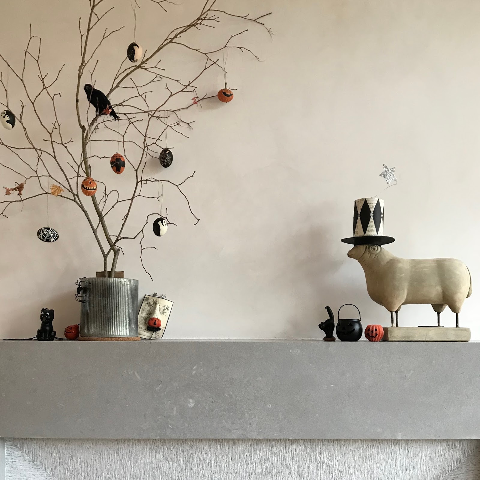 I stopped by my neighbors modern farmhouse the other day and she had created the most amazing simple display on her mantle for Halloween.